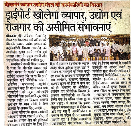 *Bikaner Vyapar Udyog Mandal*, established in 1947, is one of the oldest and most respected trade associations in the region, committed to safeguarding the interests of traders, shopkeepers, and local industries. Its office is situated in the Modern Market complex, directly opposite City School, serving as a hub for coordination, support, and advocacy for the business community of Bikaner.